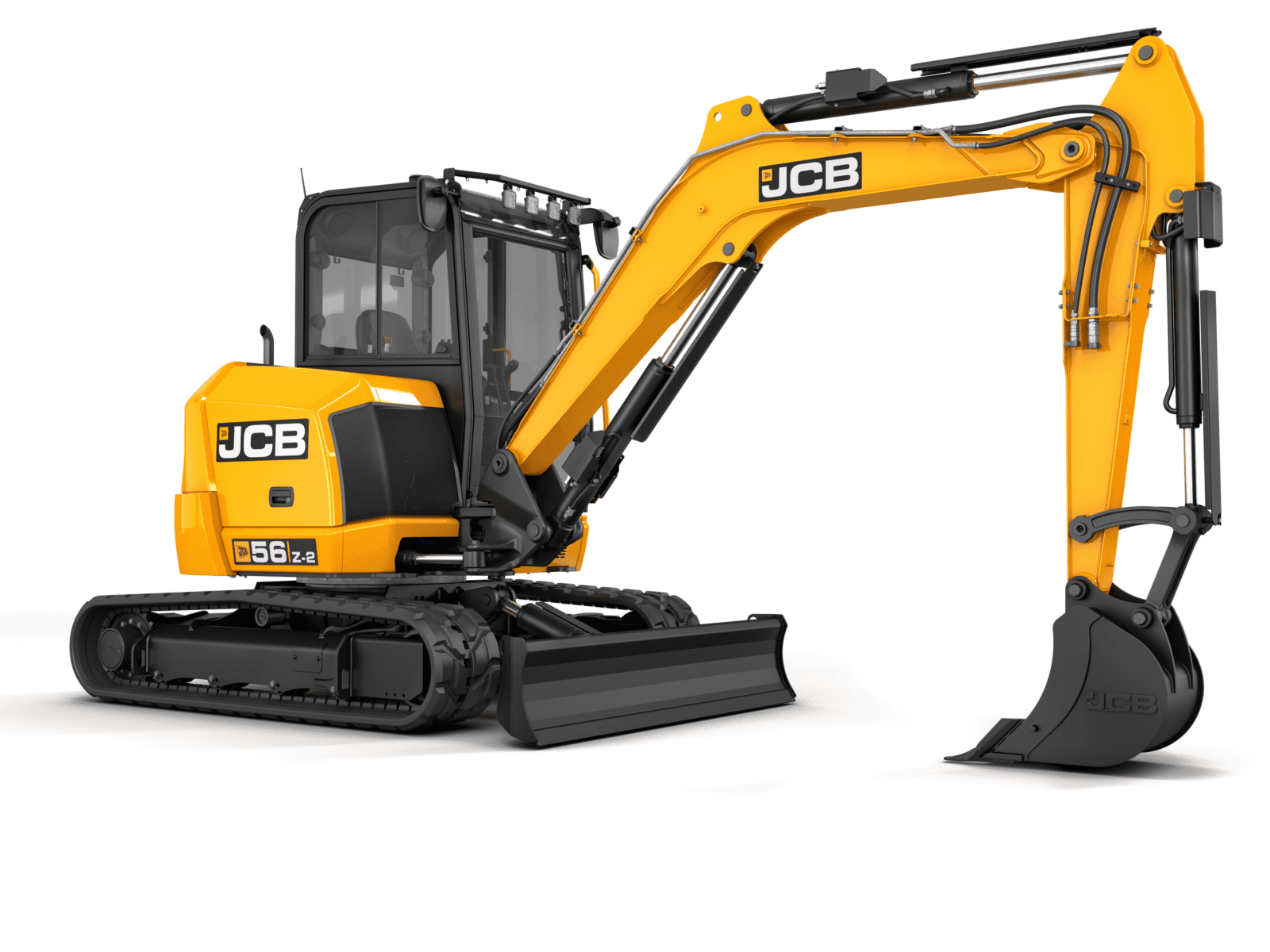 De nieuwe JCB 56Z-2 midigraafmachine heeft een nog ruimere cabine dan tevoren, met meer dan genoeg opbergruimte, een telefoonbak, opbergnet en een bekerhouder. Het volledige gebied is makkelijk en veilig toegankelijk via een grote deur.
