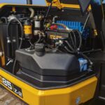 Onder de wijd openende stalen motorkap kunt u makkelijk vanaf de grond de brandstoftank van de JCB-minigraafmachine bijvullen, wat nog extra wordt vergemakkelijkt door de externe dieselpeilaanduiding. De optionele bijvulpomp heeft een automatische stopfunctie zodat er minder brandstof wordt gemorst en de veiligheid toeneemt.